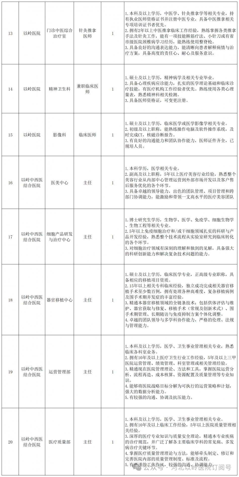 河北以岭医院2026年招聘公告